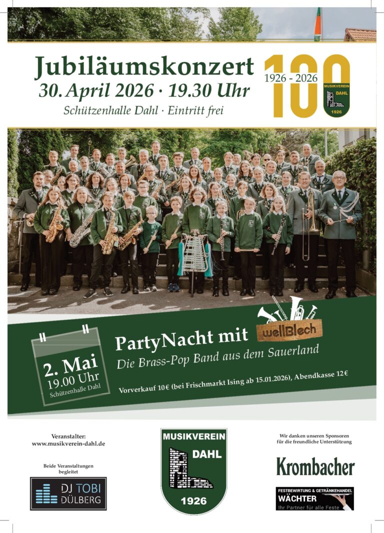 Am 15.01.2026 startet endlich der Karten-Vorverkauf für die Jubiläumsparty des Musikvereins Dahl am 02.05.2026. Die Karten können im Vorverkauf für …