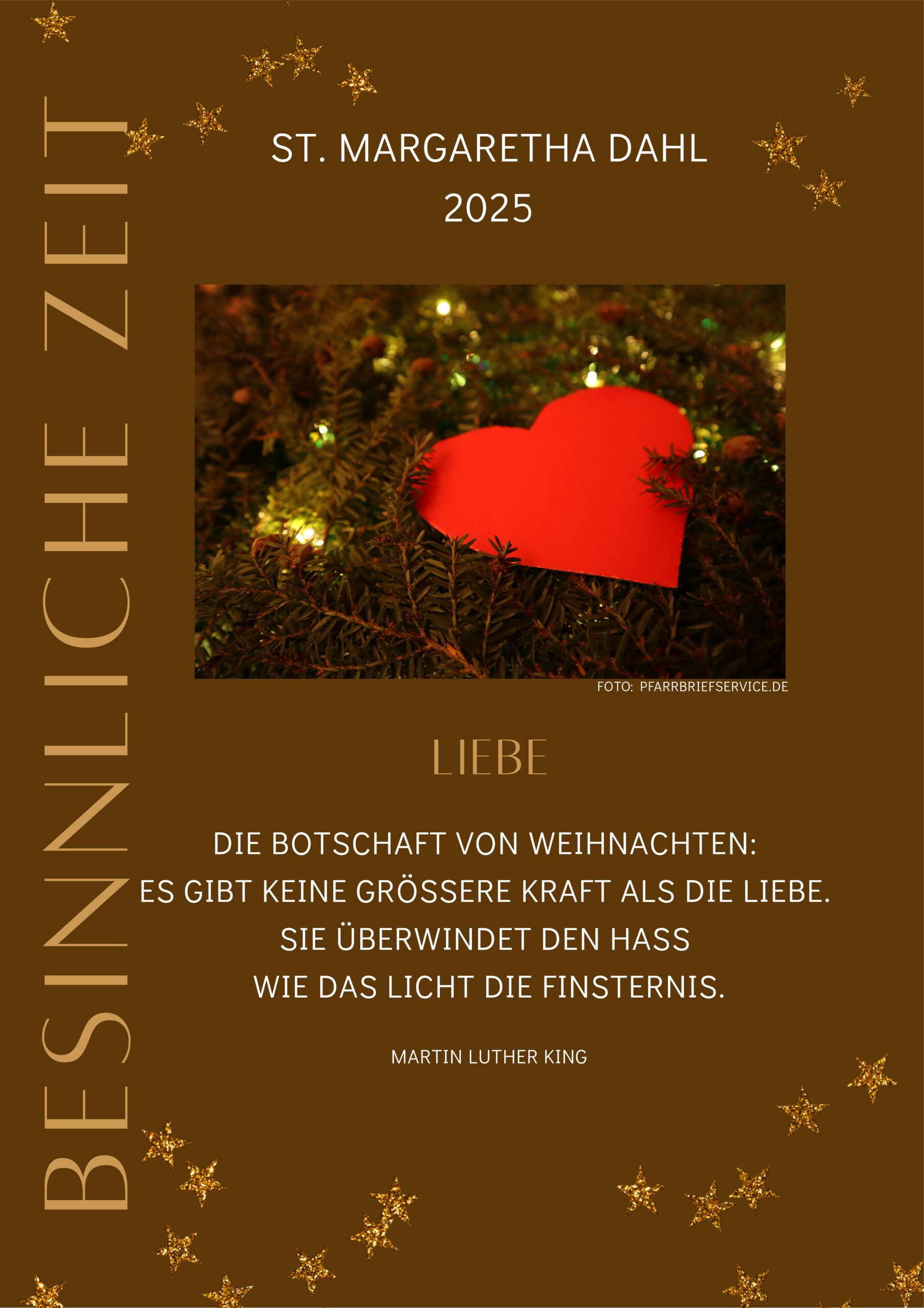 Am Tag vor dem 4. Advent lädt die Kirchengemeinde zur Vorabendmesse ein. Hier gibt es weitere Informationen zur Adventszeit in ... |